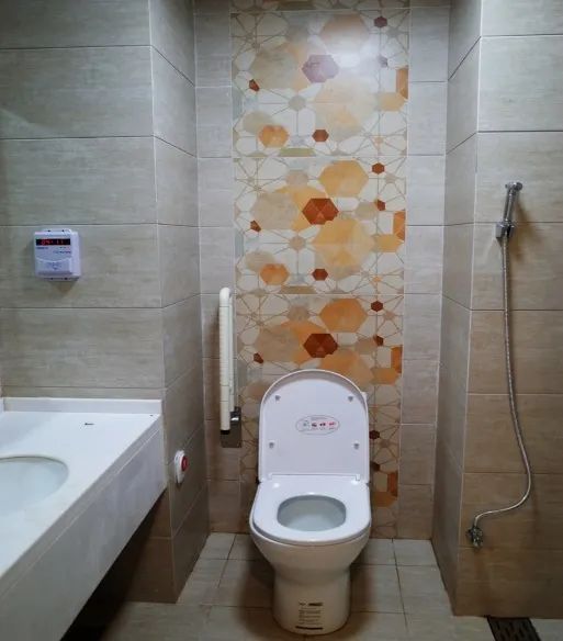 病區衛生間采用干濕分區,為了產婦、兒童的安全,淋浴間地面采用拉槽防滑處理,坐便器旁安置緊急呼叫按鈕。除此之外,還設置污洗龍頭,做到潔、污分開。真正將人性化設計落到實處。